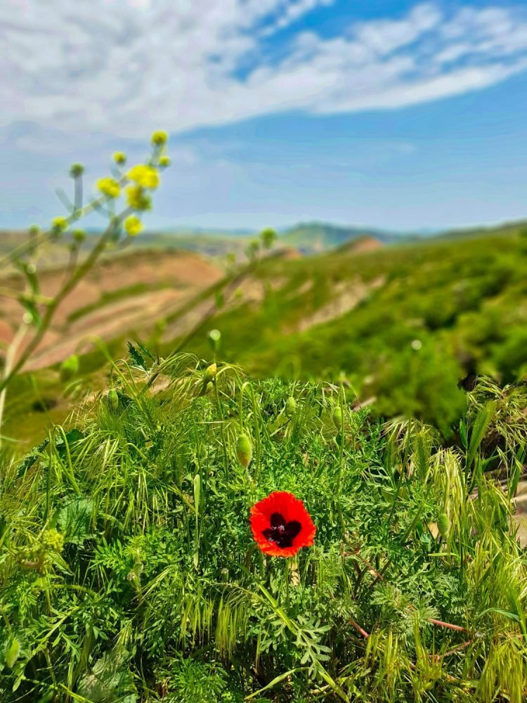 The Georgian side looks more of a semi-desert. The brownish deserted wave alike hills stretch as far as you can see. The Azerbaijani side is totally different. There are mostly green lowlands our there.