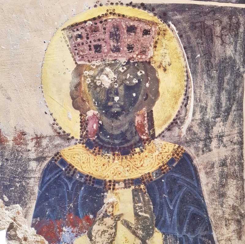 Thanks to our enthusiastic guide I was lucky to visit some of not that easily accessible chapels. They keep well-preserved wall paintings of Georgian history (mostly of different religious authorities and themes). However, one thing stunned me. A saint woman’s headcover on one of the wall paintings resembled me one of the most popular traditional women’s headcovers from western Latvia (we have many; different for each region). Here are the pictures for you to judge.